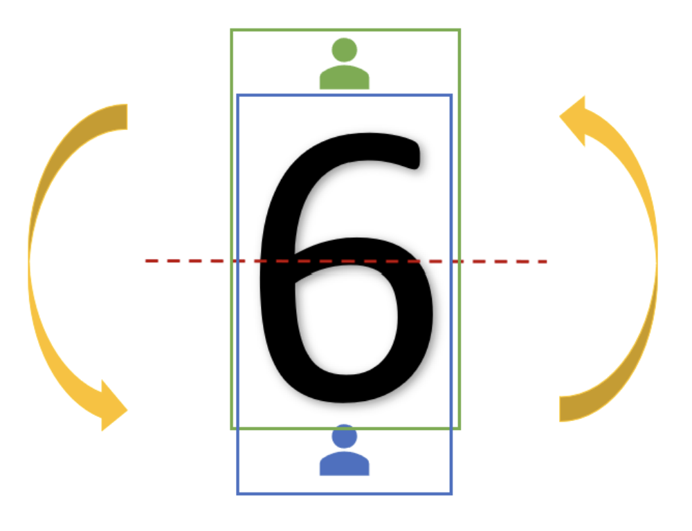 When you stay on your respective sides of the line you only see your perspective – either a 6 (you) ora 9 (them).